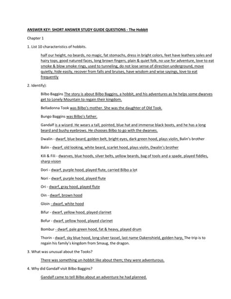IHI - Read Online THE HOBBIT STUDY GUIDE ANSWER KEY Doc Gutenberg