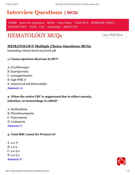 MSR - Download online hematology mcqs questions with answers pdf Paperback Gutenberg